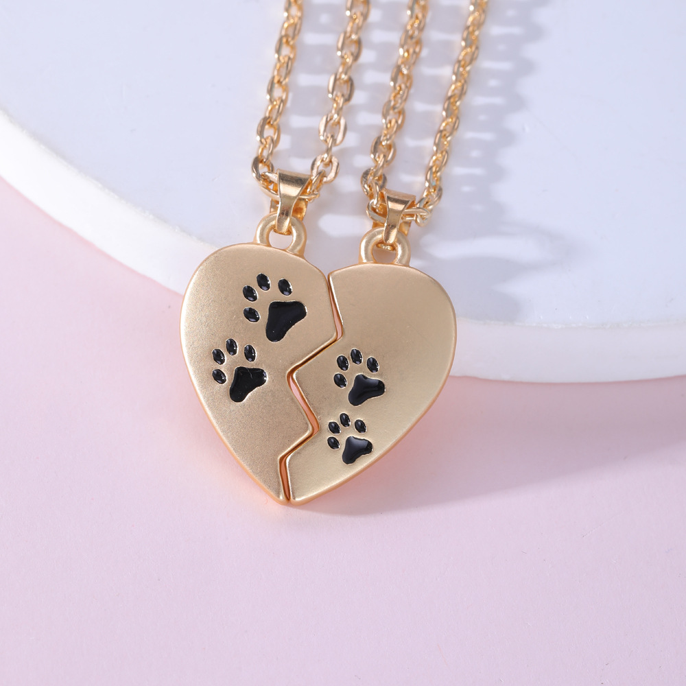 Couple Heart-Shaped Necklace with Pet Paw Print