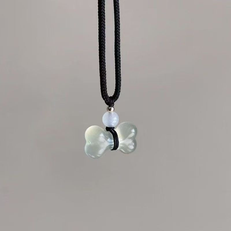 Chalcedony and Jade Dog Bone Pendant Necklace